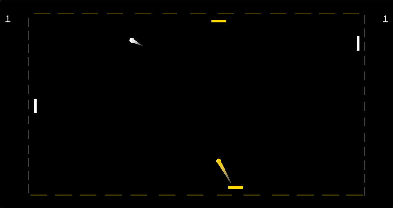 There are four paddles (left/right and top/bottom) and two balls: one horizontal and one vertical.